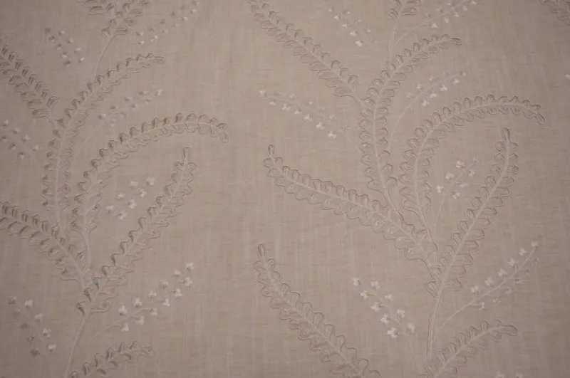 Adorned with meticulously embroidered fern fronds, Uma Tea from Richloom elevates interior spaces with botanical sophistication. The refined pattern lends an air of understated luxury to draperies, bedding, and decorator pillows, creating a harmonious connection to nature while maintaining an elegant aesthetic suitable for discerning tastes.
