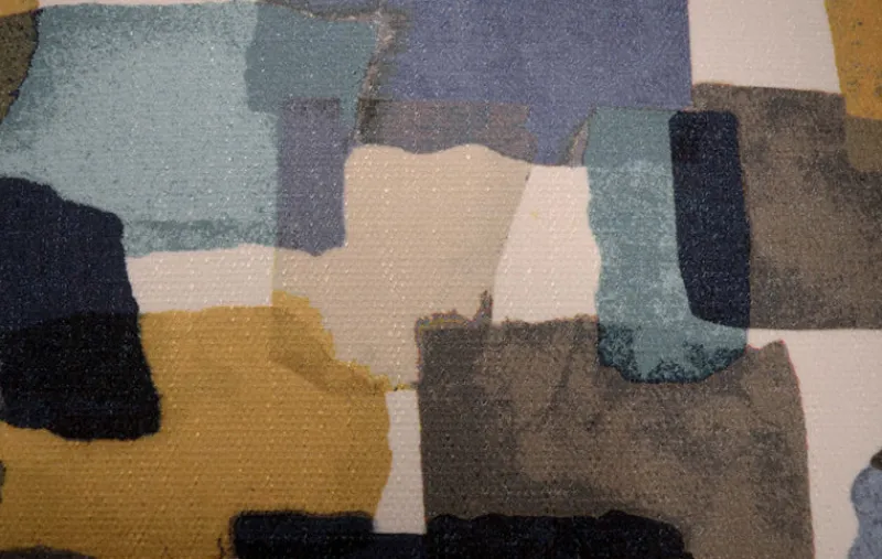 Folio Caspian is a fun blue and navy abstract contemporary geometric patterned fabric available and in stock at The Fabric Co. Folio Caspian could make an awesome statement in your next decorating project!