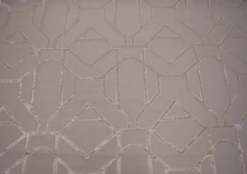 Enigma Snowflake is a beautiful crisp white embroidered geometric lattice patterned fabric from Valiant that is available and in stock at The Fabric Co. Enigma Snowflake could make a stunning addition to your next drapery or decorating project!