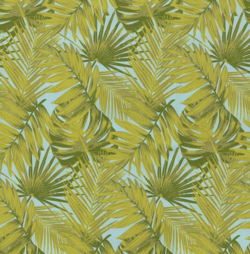 OD Tropica Mist Light Blue Tropical Palm Leaves Outdoor Tempo Fabric