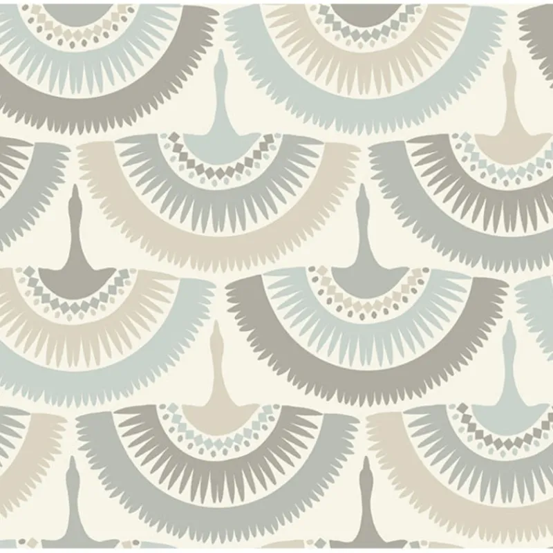 Birds’ graceful, winged silhouettes inspire the open fan shape of pattern Feather & Fringe.