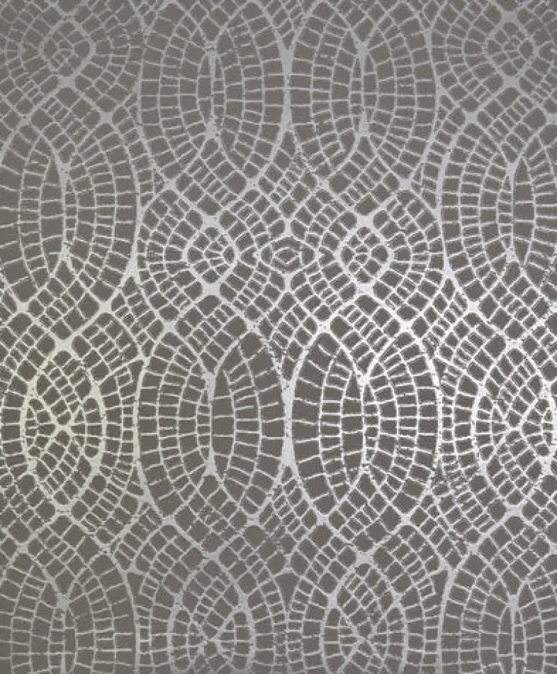Antonina Vella Tortoise Wallpaper mimics turtle shells in a vertically braided pattern of smooth metal.
