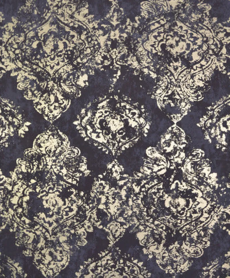 Inspired by a classic motif in a contemporary mode, Antonina Vella Stargazer Wallpaper features a shimmering damask design that materializes like a phantom in precious metal on a misty field.