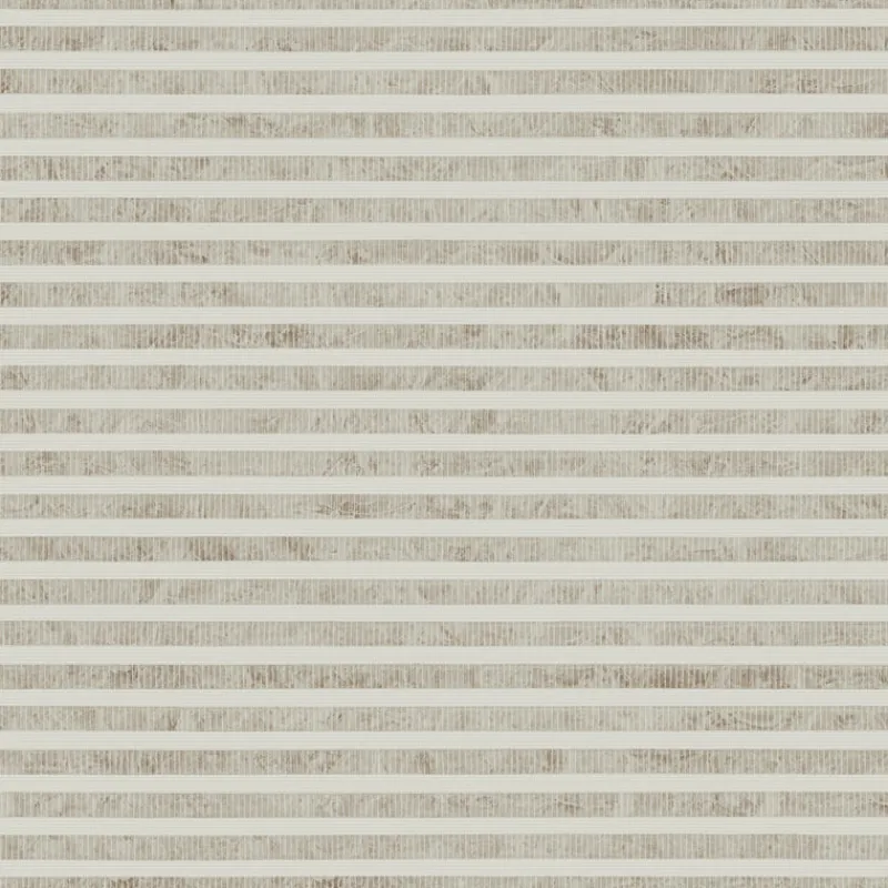 A narrow horizontal stripe, Antonina Vella’s Faux Capiz Wallpaper features lightly corrugated bands with pearly ribbons that resemble actual shell.