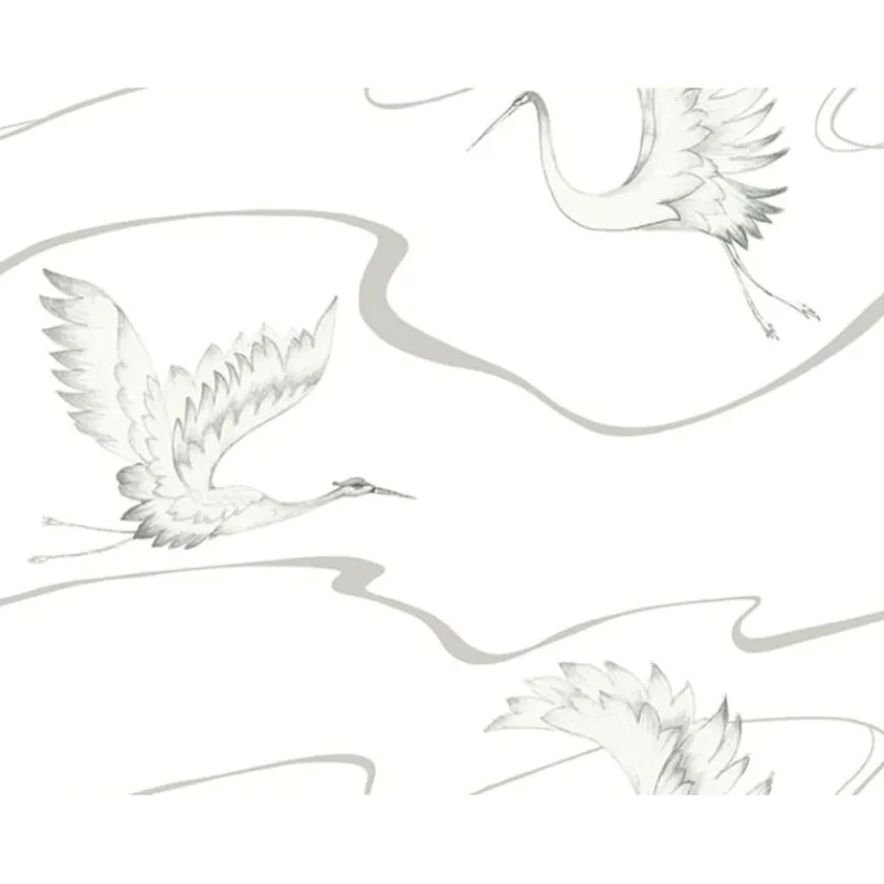 The artistic form of birds in flight, among metallic or matte ribbons, creates the Asian-inspired elegance of pattern Soaring Cranes.