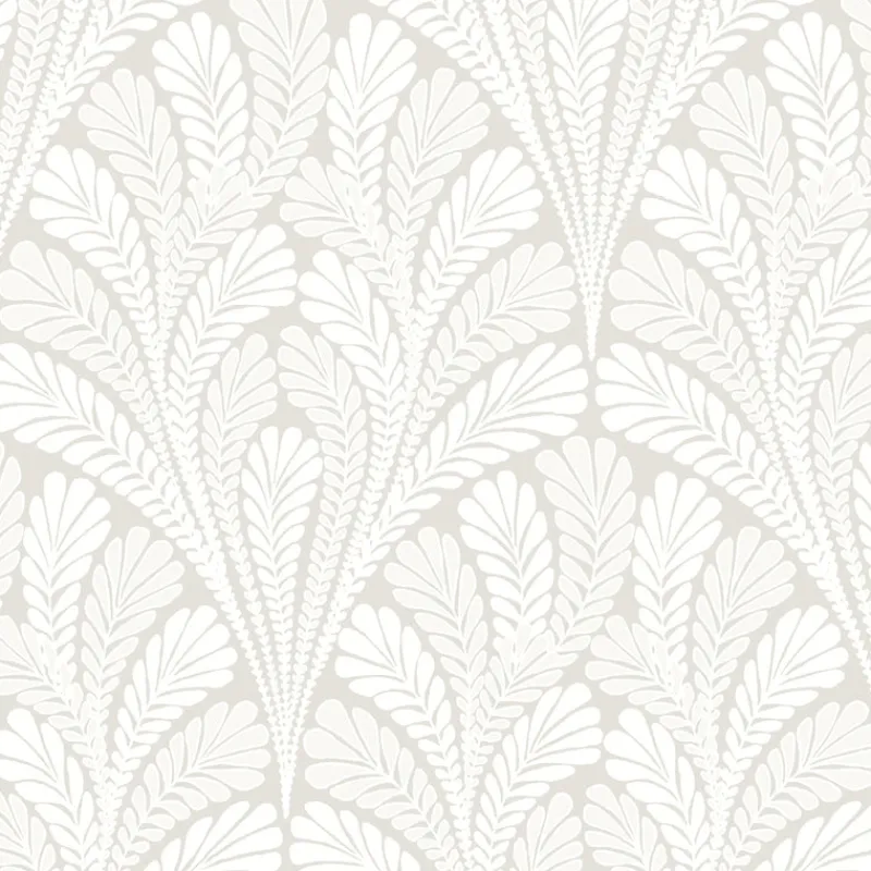 Fan shaped feathery pinnate leaves define the graceful arch of pattern Shell Damask, accented by the addition of modern metallic and pearlescence.