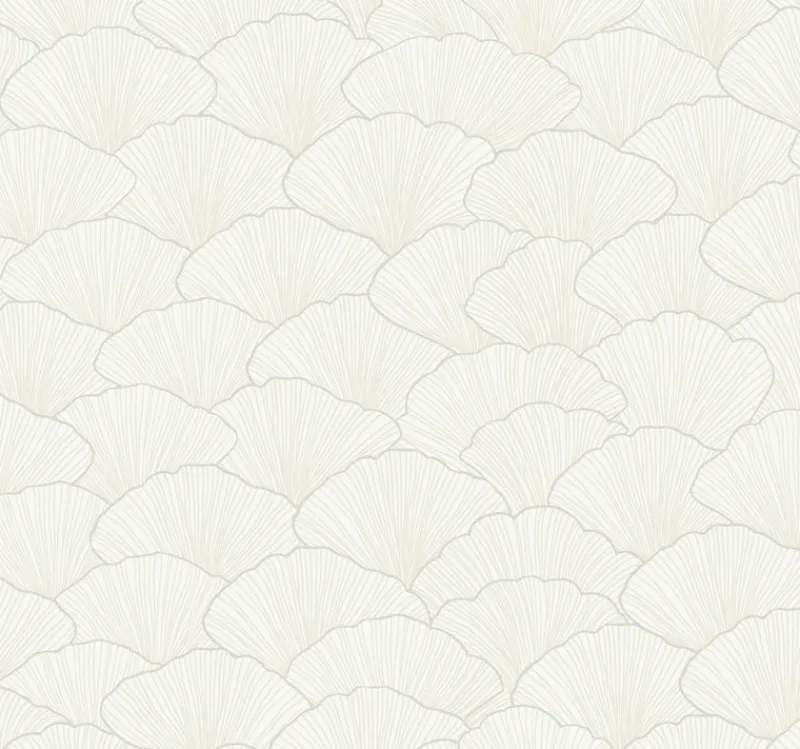 The Ginkgo tree is a living fossil dating back many millions of years; but this design of overlapping fan shaped leaves outlined in metallic ink is perfection in a contemporary setting. This is Luminous Ginkgo Wallpaper.