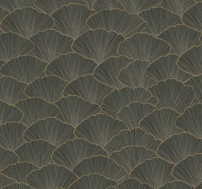 The Ginkgo tree is a living fossil dating back many millions of years; but this design of overlapping fan shaped leaves outlined in metallic ink is perfection in a contemporary setting. This is Luminous Ginkgo Wallpaper.