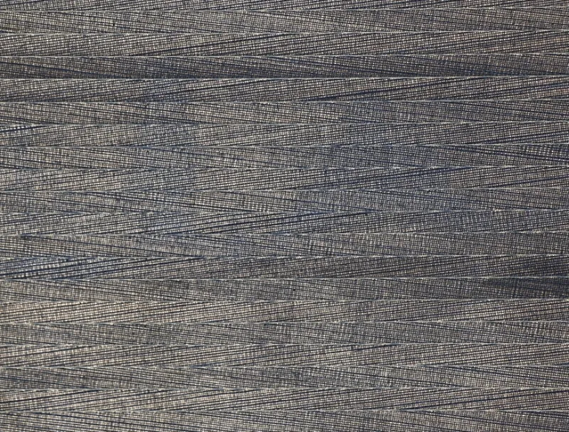 Shimmery bold rich navy blue grasscloth creates a simple woven-looking diagonal stripe pattern and a lot of interest.