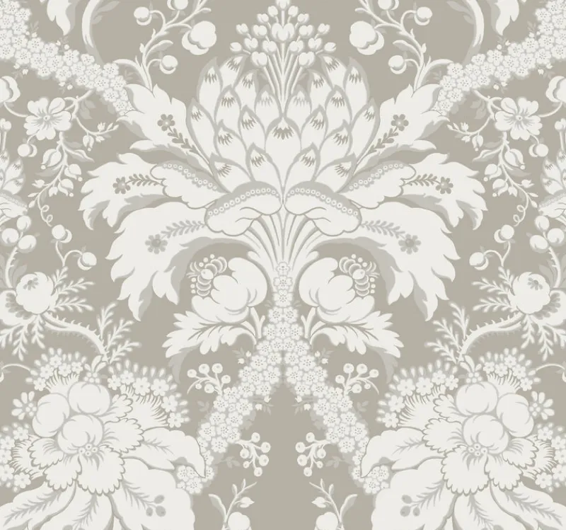Beautiful, lavish vines, vegetation, and blossoms, inspired by a French jacquard fabric, create a garden of delights edged with touches of burnished metallic in pattern French Artichoke Damask.
