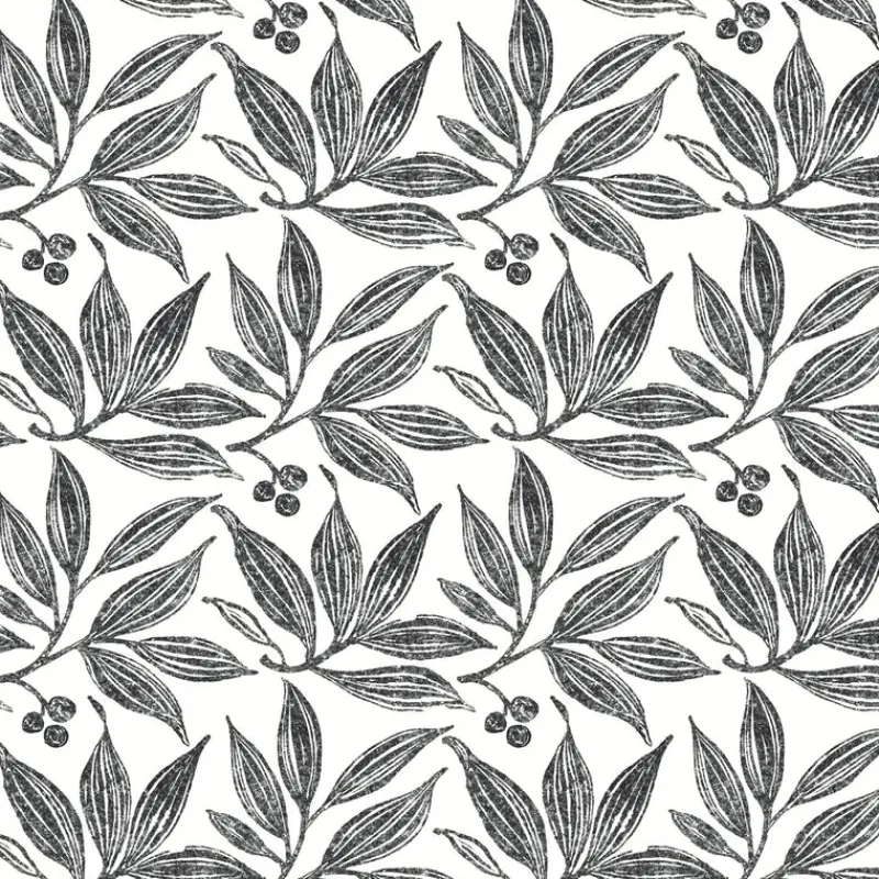 FH4063 Black/White Chokeberry Block Print Wallpaper