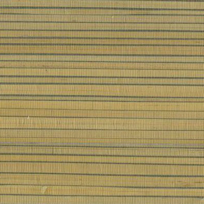 Shimmery turquoise blue and tan stripes create neutral texture in this grasscloth wallpaper.