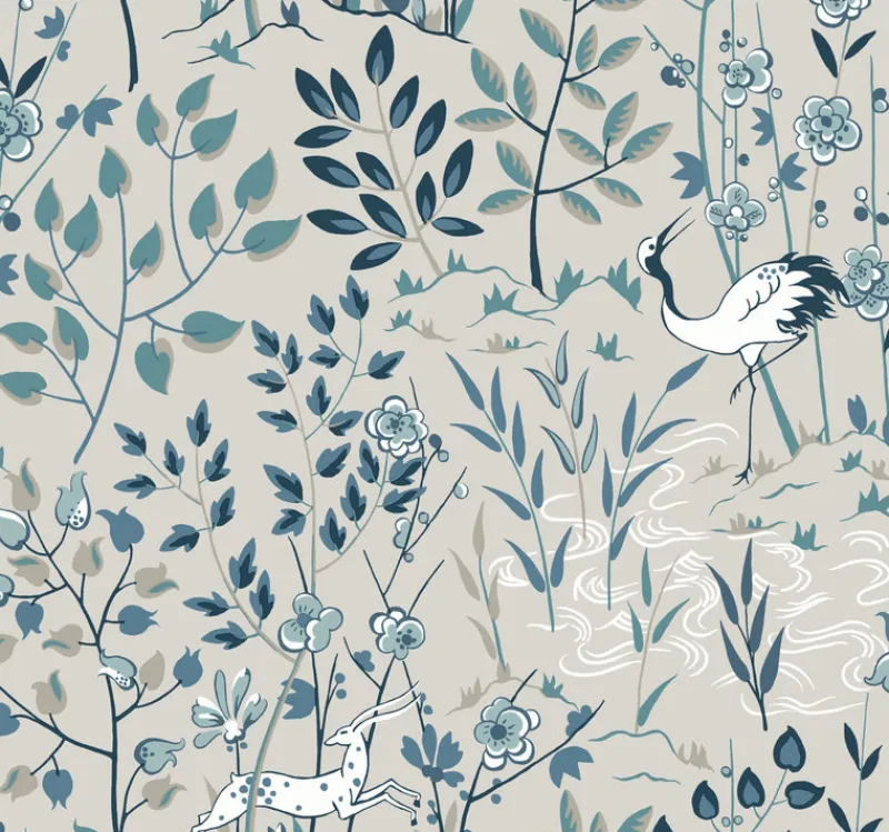 Pattern Aspen is a woodland and stag scenic pattern with Art Deco leanings.