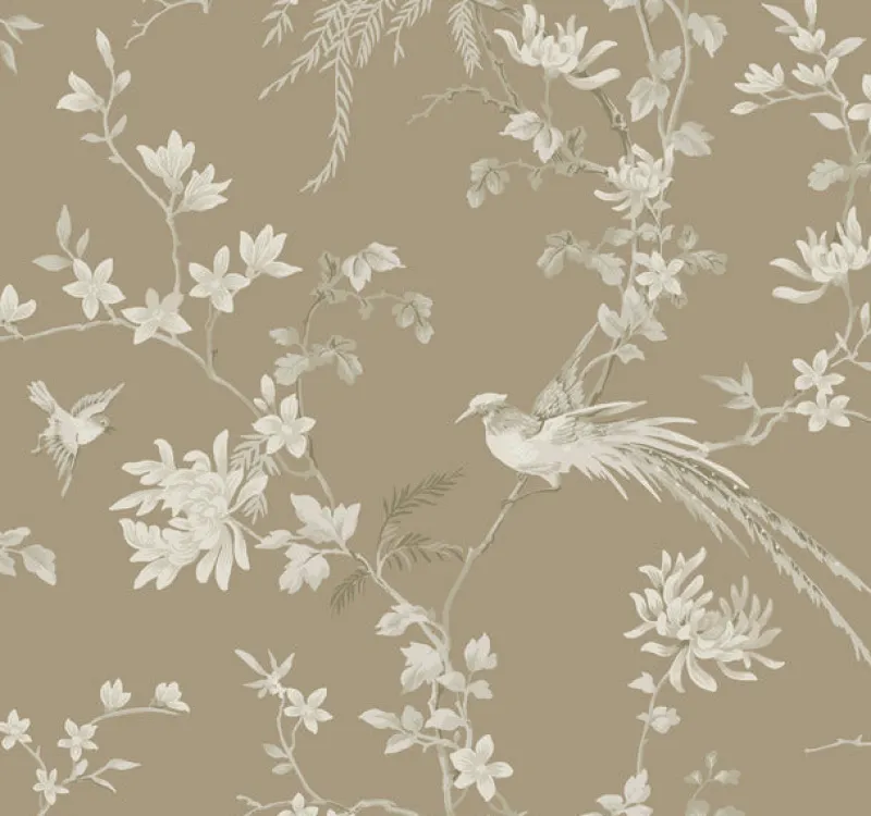 The lush foliage and songbirds of Bird and Blossom Chinoiserie create a surround of Asian inspired motifs against a luxurious metallic finish.