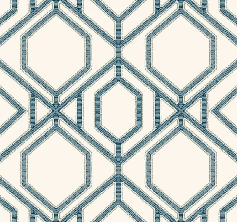 A nature-inspired diamond and hexagon geometric creates the Boho leaning of pattern Sawgrass Trellis.