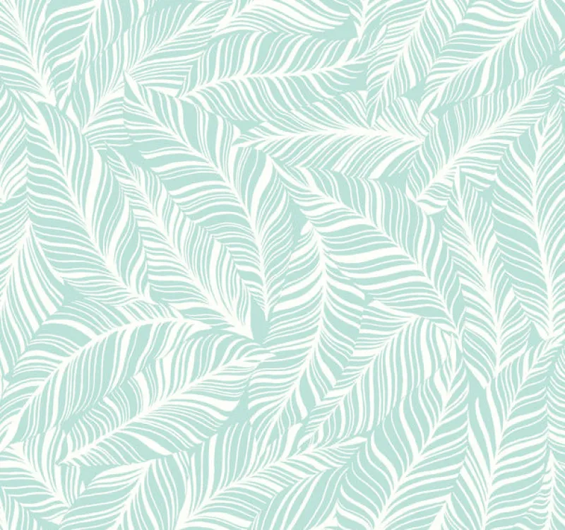 Tightly packed palm leaves feather and curl in allover pattern Rainforest Canopy, creating a modern, zebra stripe feel.