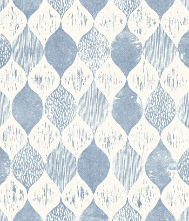 Featuring the quaint character of batik fabric or stamped paper, Magnolia Home Woodblock Print Wallpaper adds an element of craftsmanship to the classic ogee stripe.